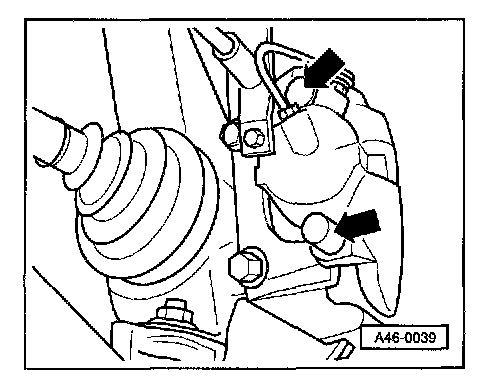 - Bolt brake caliper housing to brake carrier using two guide pins.