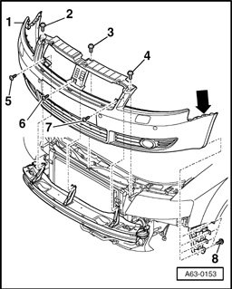 Front Bumper (Up to Model Year 2005), Removing and Installing