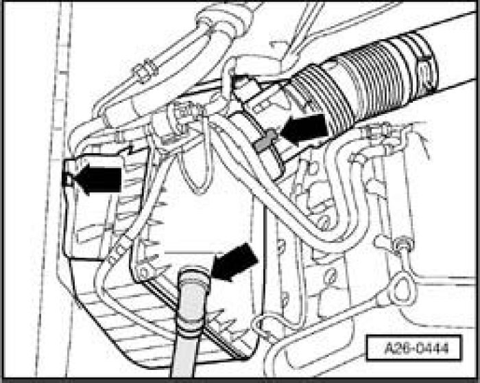 - Cut cable ties (arrows), open bracket for starter wiring and remove electrical wiring.