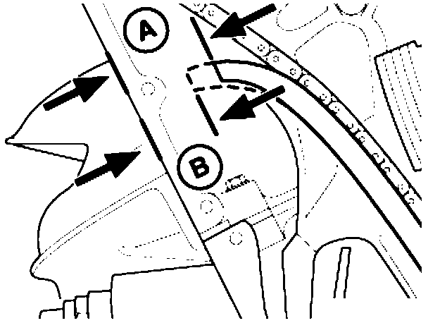 - Press tensioning rail once briefly towards the chain and measure dimension (A).