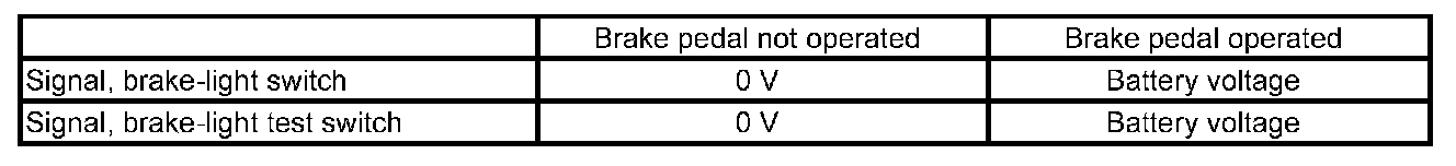 The two signals of the brake-light switch behave with respect to each other in accordance with the following table: