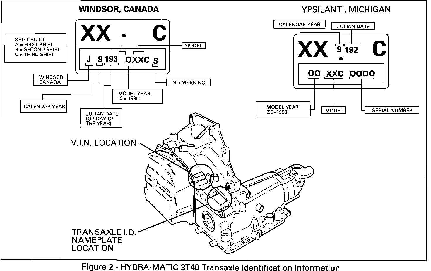 The new Direct Clutch drum went into production July 11, 1989, (Julian Date 192) for all Willow Run built transaxles and July 12, 1989, (Julian Date 193) for all Windsor built HYDRA-MATIC 3T40 transaxles.