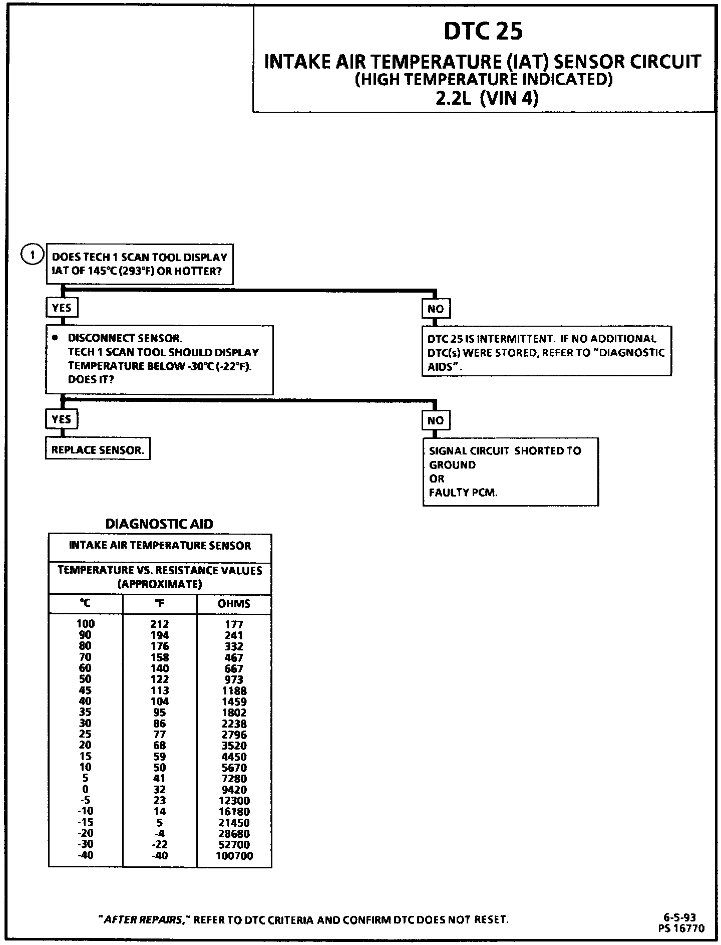 DTC 25 - Intake Air Temperature Sensor Circuit (High Temperature Indicated):