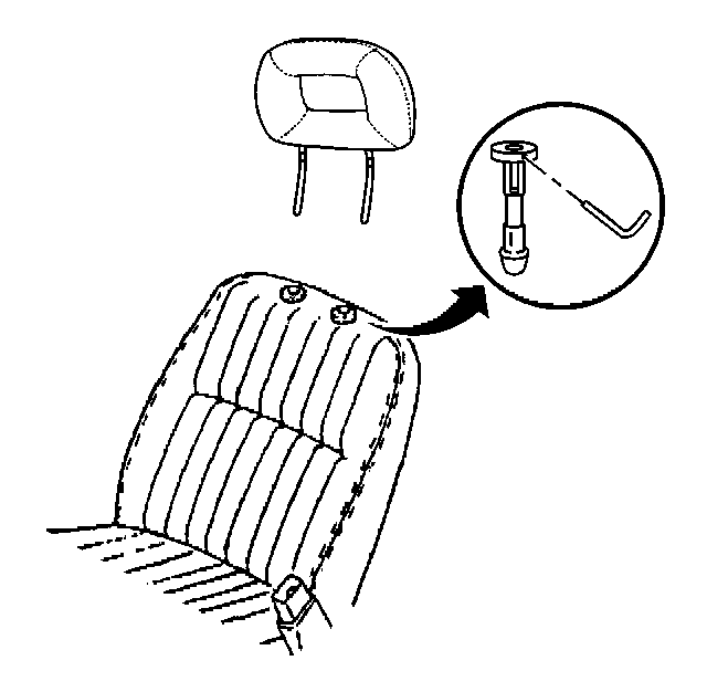 2. Insert a small diameter tool in the hole in both head restraint retainers and press in to release the rod.