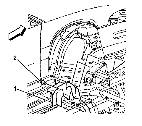 2. Install the push-in retainers (2) to the engine splash shield (1).
