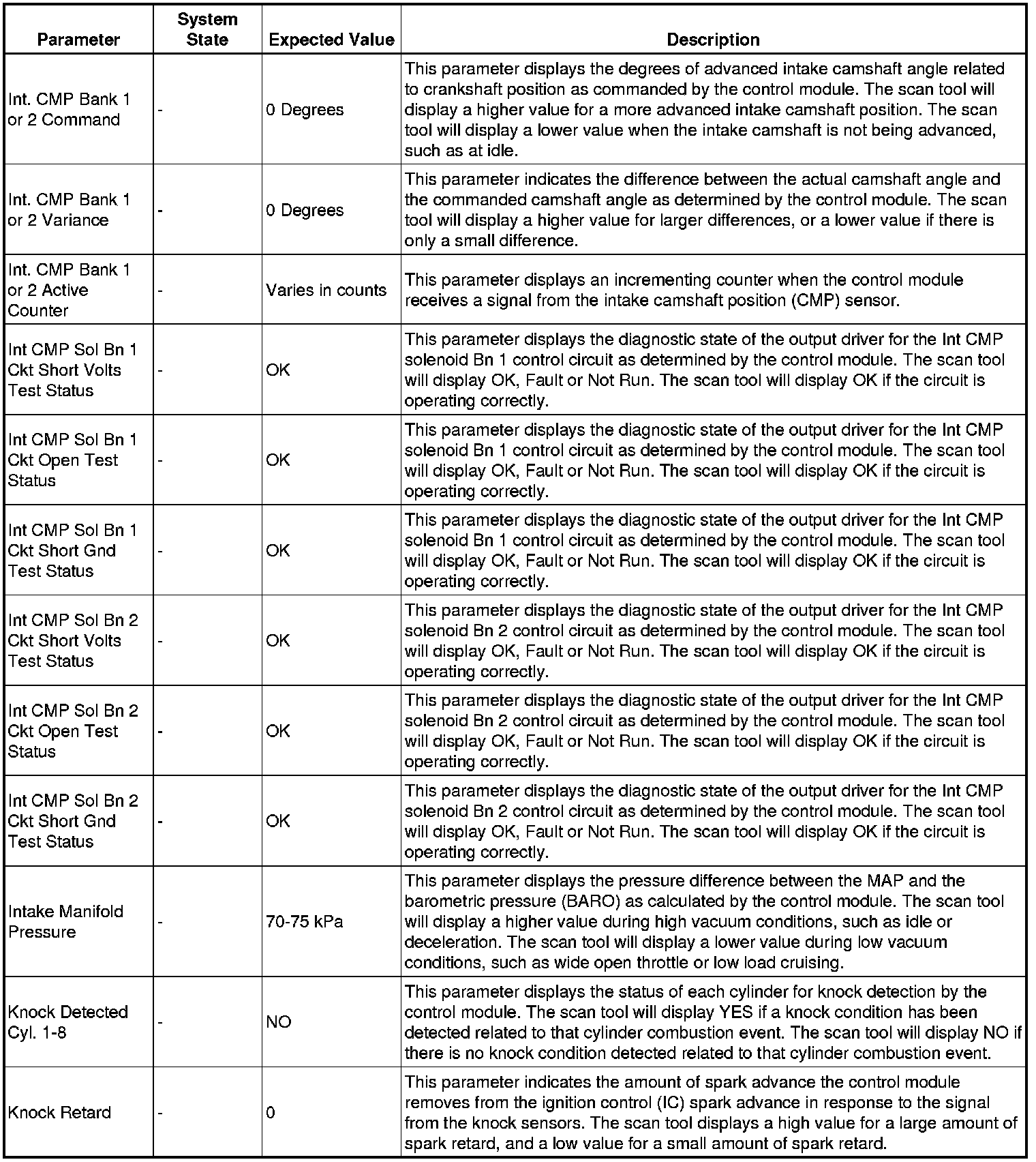 The Engine Control Module Scan Tool Data List contains all engine-related parameters that are available on the scan tool. The list is arranged in alphabetical order. A given parameter may appear in any one of the data lists, and in some cases may appear more than once, or in more than one data list in order to group certain related parameters together.