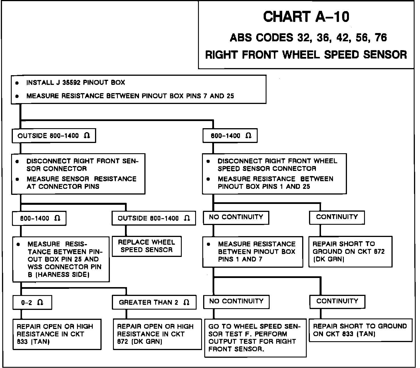 Fig. 22 Chart A-10, ABS Trouble Codes 32, 36, 42, 56 Or 76 (Right Front Wheel Speed Sensor):