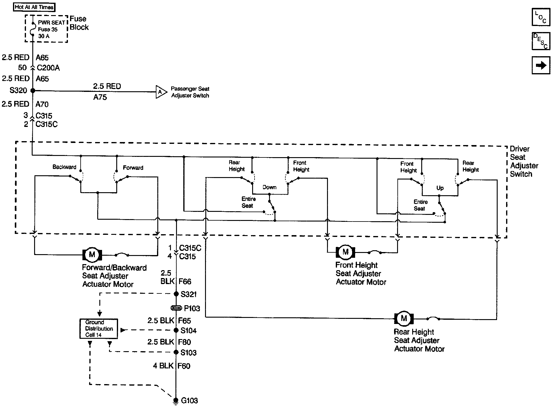 Power Seats Schematics: Driver Seat Adjuster Switch And Actuator Motors Without Memory: