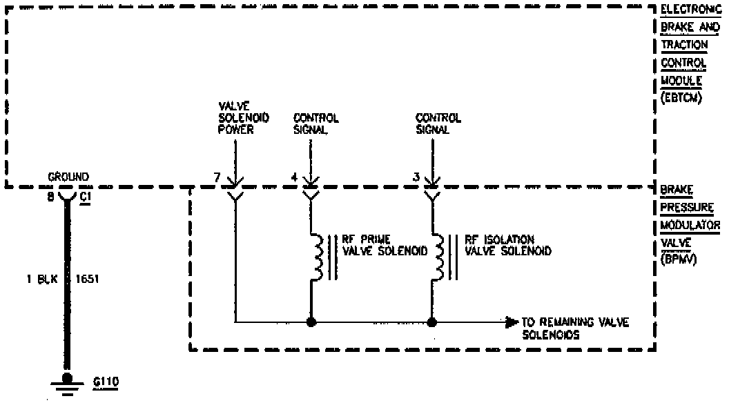 The TCS prime valve solenoid circuit is supplied with battery power when the ignition is in the RUN position. The EBTCM controls the valve by grounding the circuit when necessary.