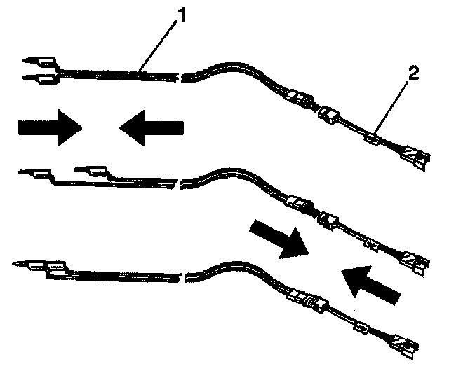 13. Connect the appropriate pigtail adapter (2) to the SIR deployment harness (1).