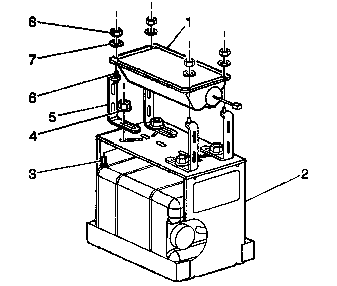 ^ To mount, use two M 6 x 1.0 nuts (2) with washers in order to secure the side impact module (1) to the deployment fixture arms (4).