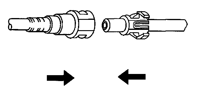 2. Push both sides of the quick-connect fitting together in order to cause the retaining tabs/fingers to snap into place.