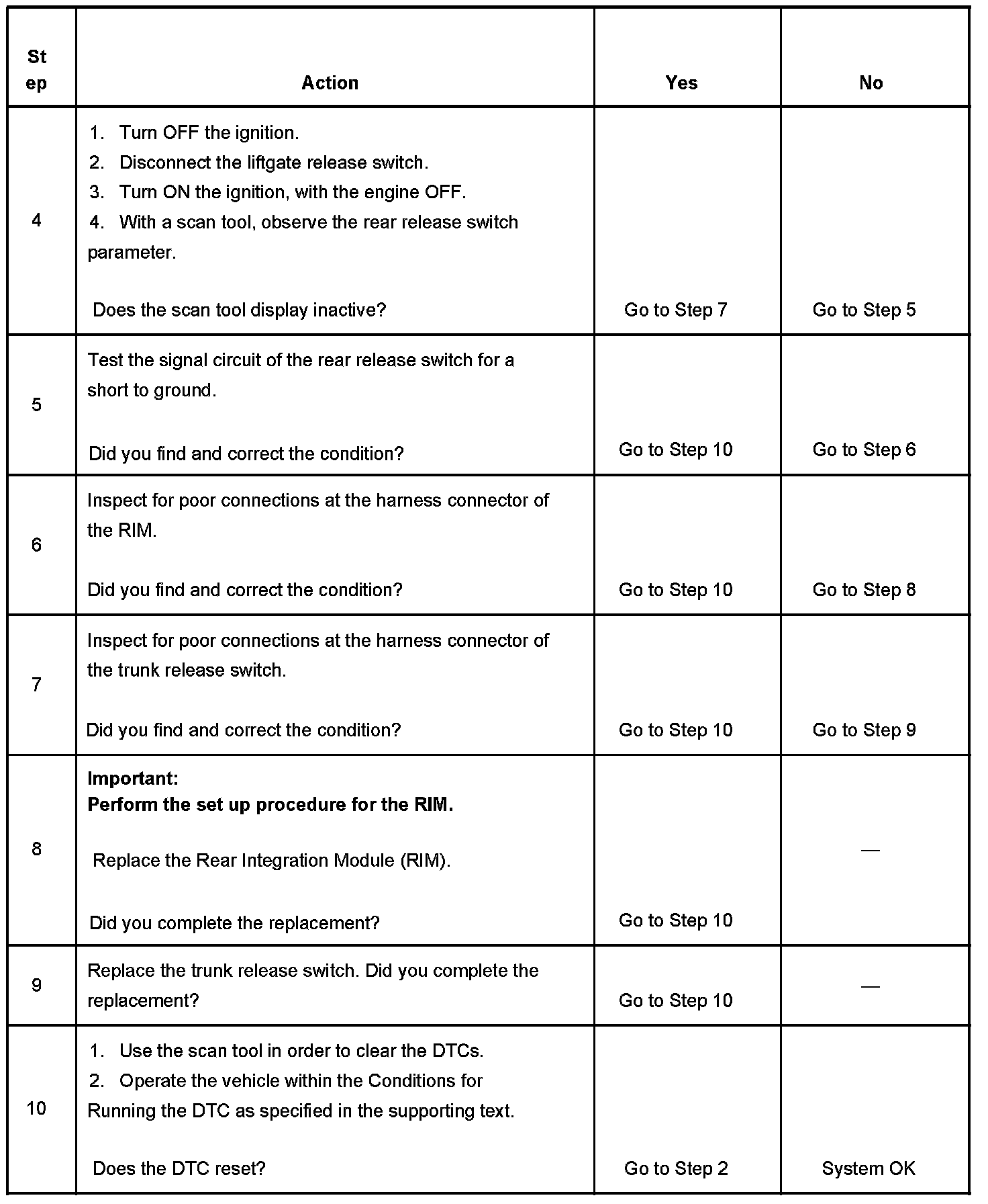 - The RIM no longer detects a fault on the signal circuit for the liftgate release switch.