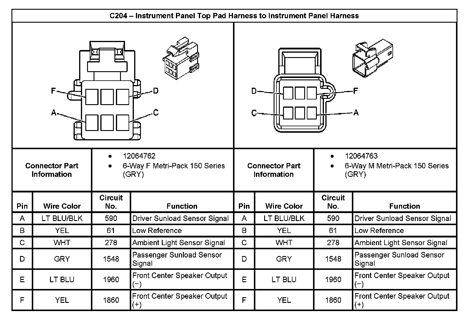 C204 - Instrument Panel Top Pad Harness To Instrument Panel Harness: