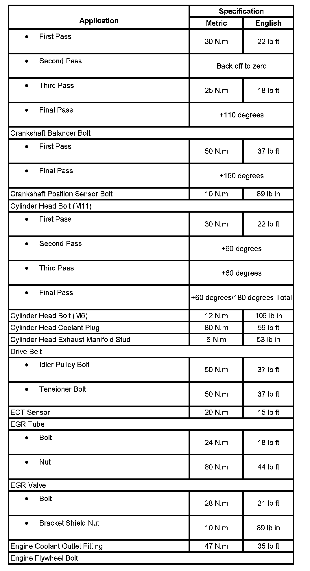Fastener Tightening Specifications: