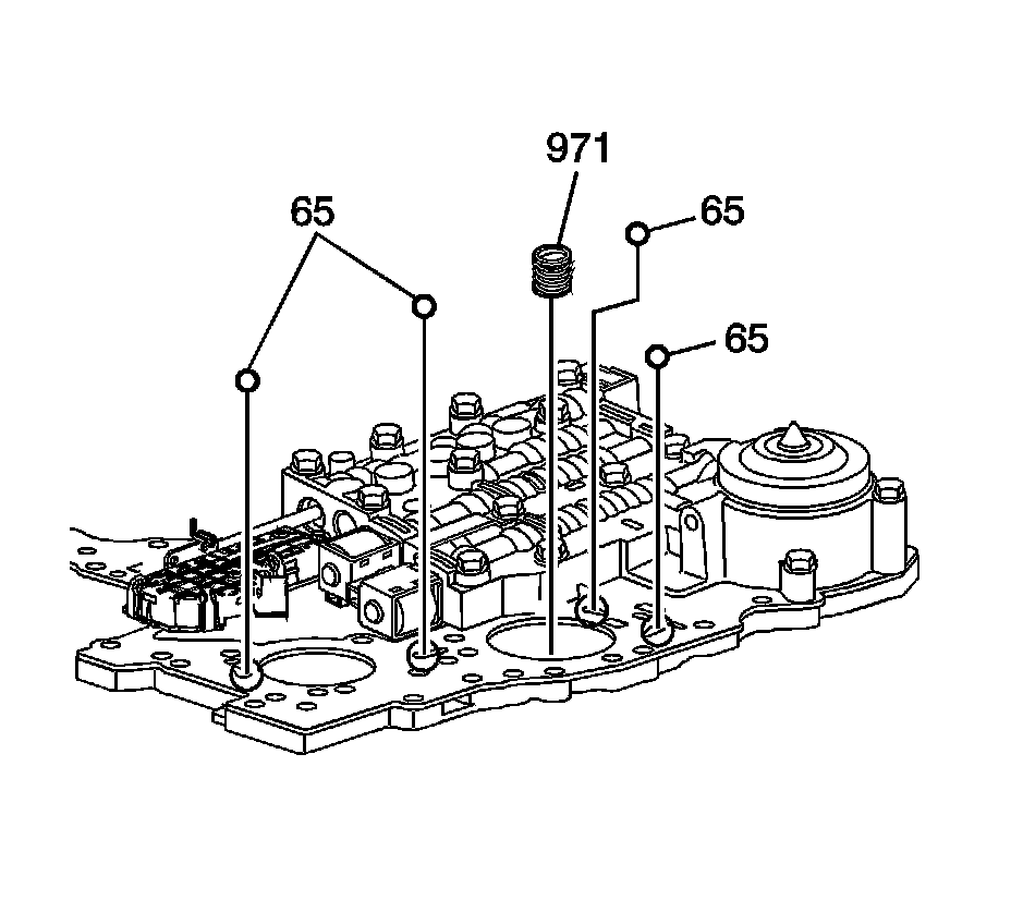 5. Remove the 4 checkballs (65) and the spring (971) from the channel plate.