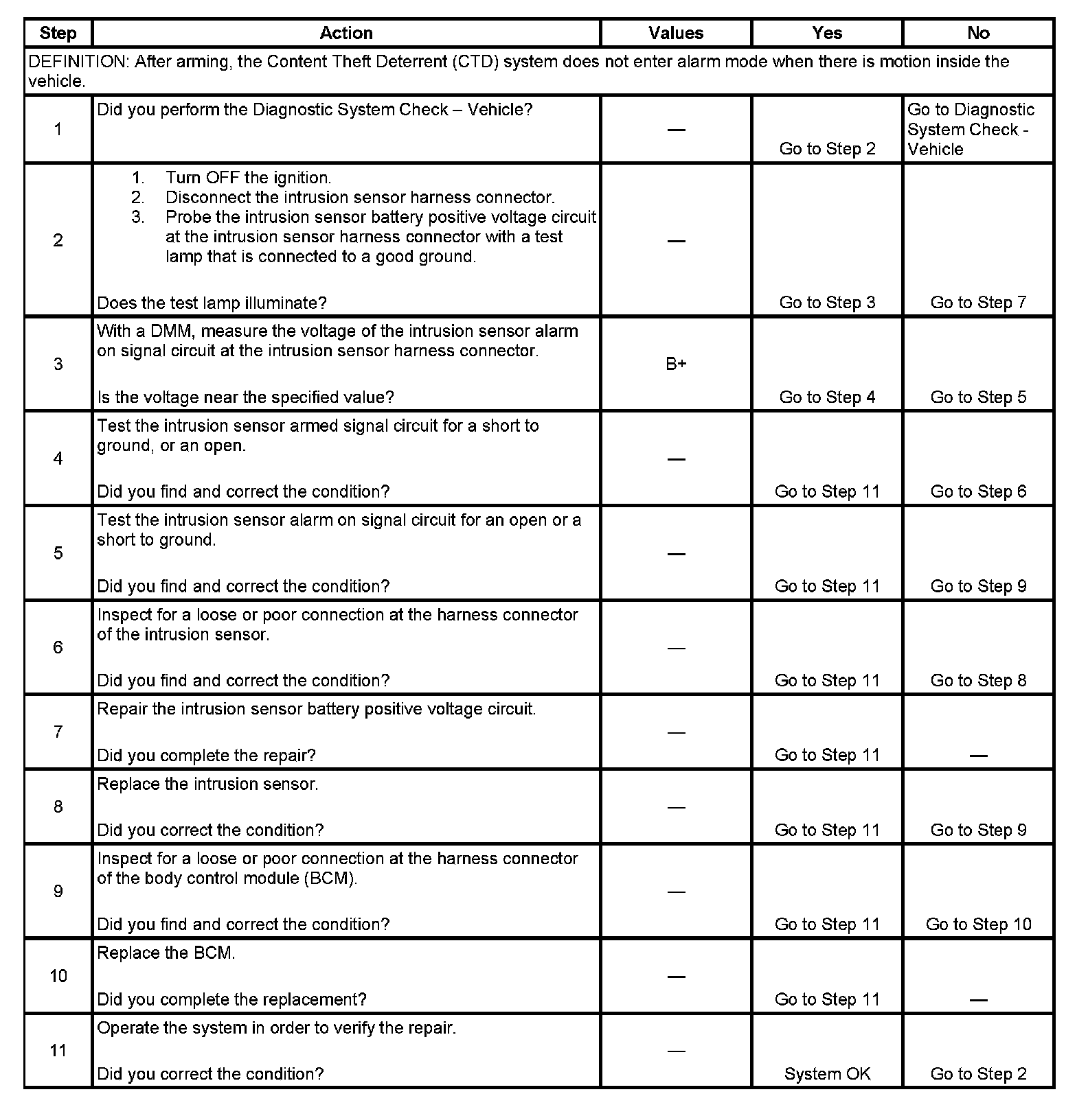 Before attempting to diagnose the intrusion sensor, ensure that the intrusion sensor is ENABLED, via the intrusion sensor defeat switch.