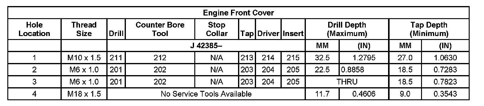 Thread Repair Specifications Left Cylinder Head Camshaft Cover Face: