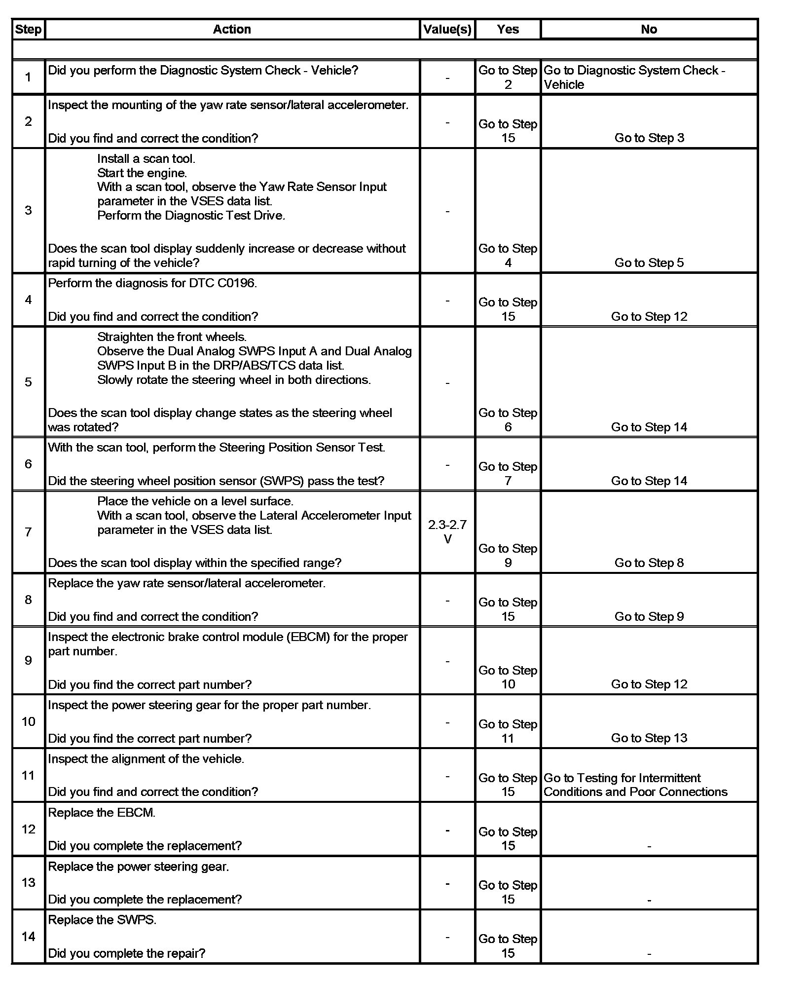 The vehicle stability enhancement system (VSES) is activated by the electronic brake control module (EBCM) calculating the desired yaw rate and comparing it to the actual yaw rate input. The desired yaw rate is calculated from measured steering wheel position, vehicle speed, and lateral acceleration. The difference between the desired yaw rate and actual yaw rate is the yaw rate error, which is a measurement of oversteer or understeer. If the yaw rate error becomes too large, the EBCM will attempt to correct the vehicle's yaw motion by applying differential braking to the left or right front wheel.