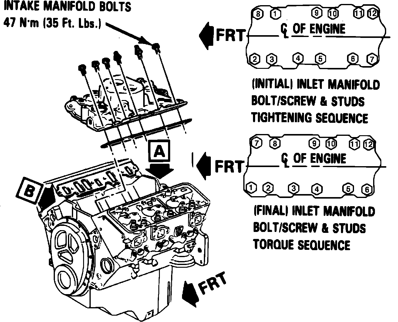 Fig. 10 Intake manifold tightening sequence. V6-262: