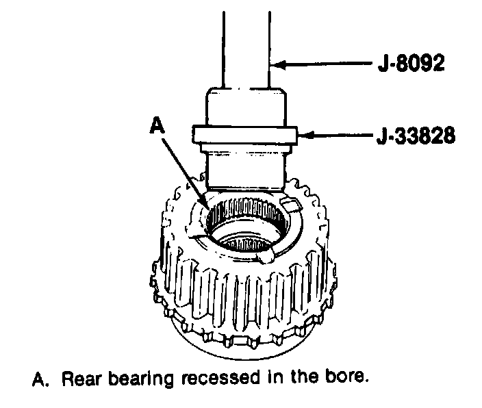 2. Rear drive sprocket bearings (31) into the sprocket (32), using J-33828 and J-8092.
