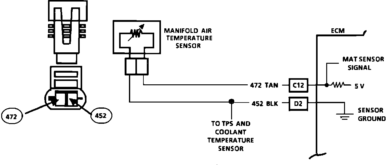 The Manifold Air Temperature (MAT) Sensor is a thermistor that controls the signal voltage to the ECM.