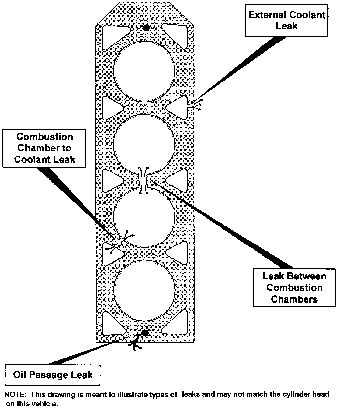 - Perform chemical combustion leak check. Any evidence of combustion gasses in the coolant indicates a head gasket leak.