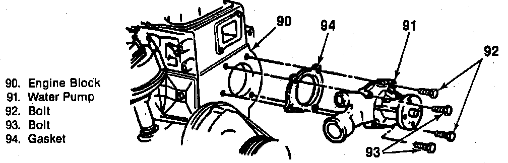 6. Reverse procedure to install. Tighten water pump attaching bolts to specification.