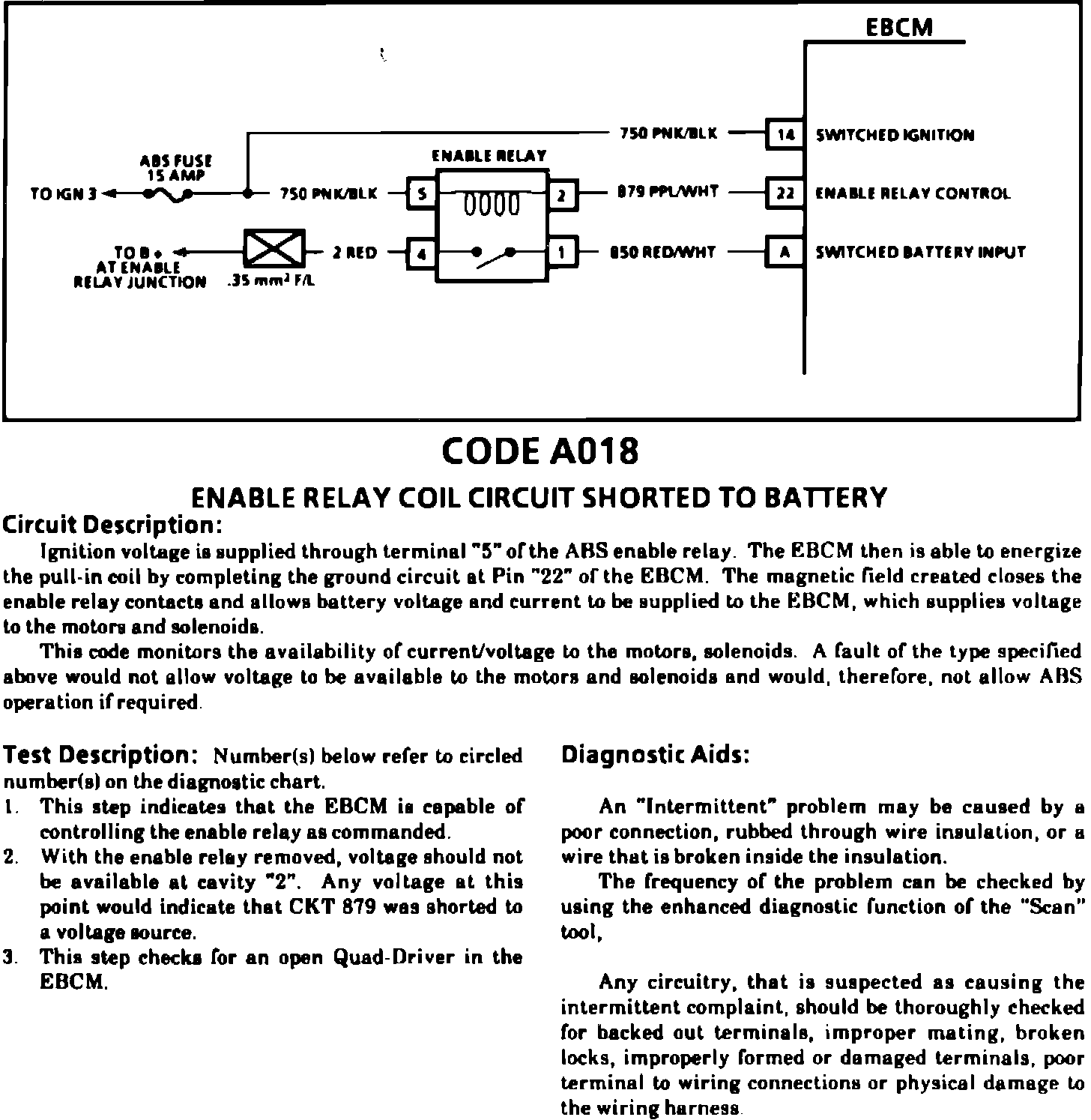 Fig. 15 Code A018 (Enable relay coil circuit shorted to battery). Part 1 Of 2: