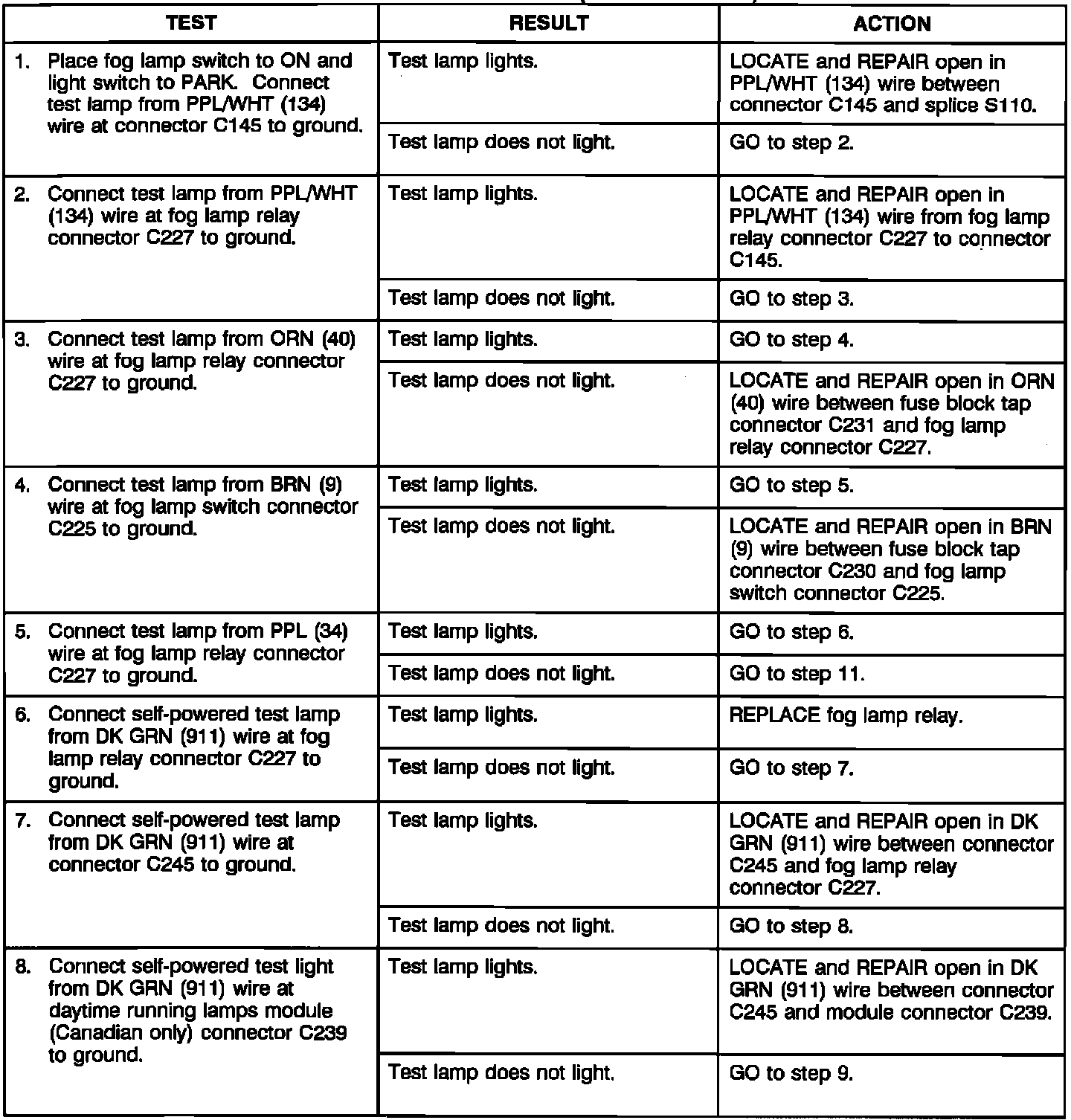 Fog Lamps W/Daytime Running Lamps Do Not Operate