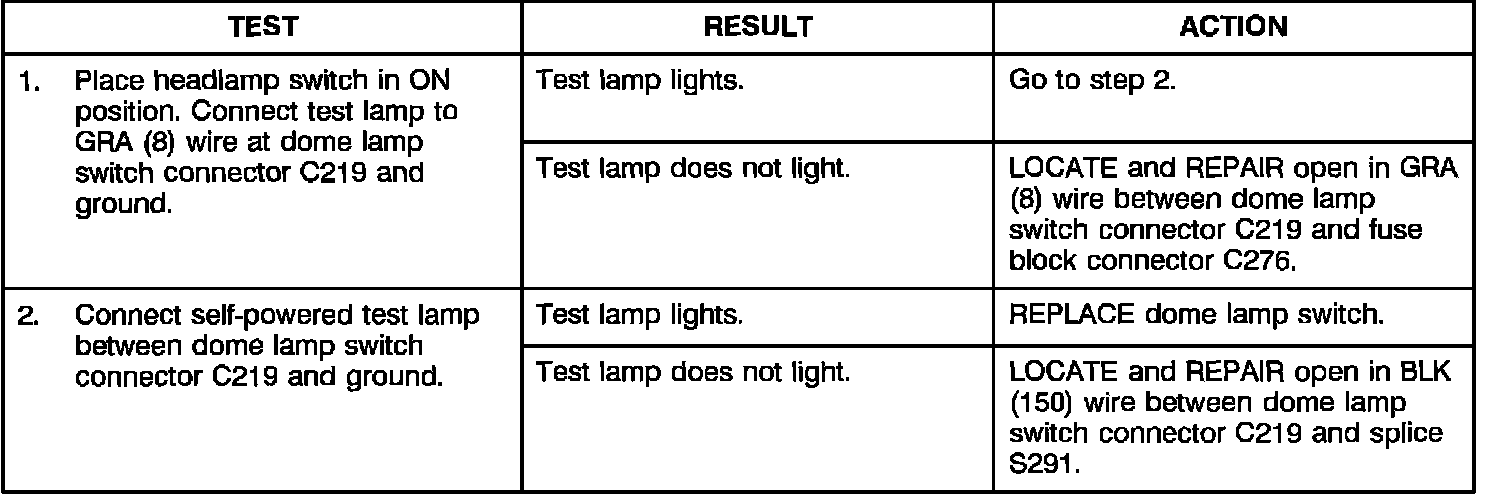 Dome Lamp Switch Illumination Lamp Does Not Operate: