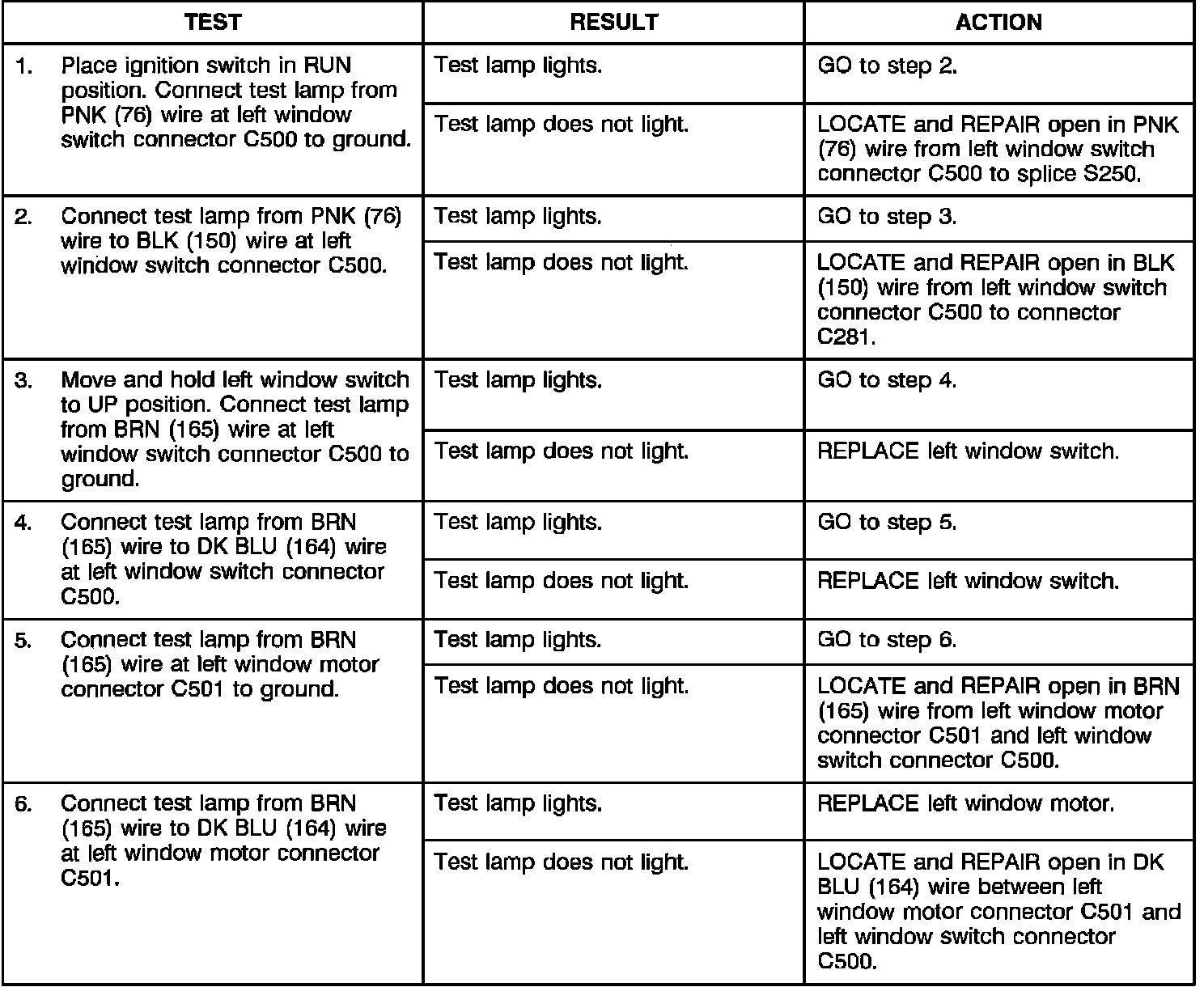 LH Power Window Does Not Operate Or Only Goes In One Direction: