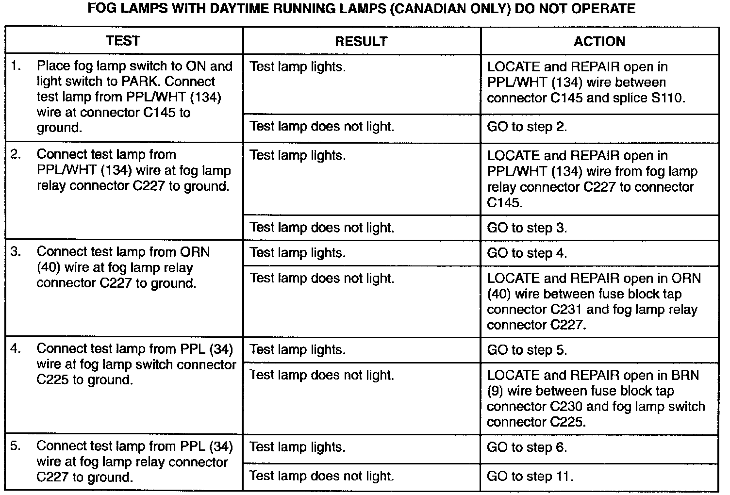 Fog Lamps With Daytime Running Lamps (Canadian Only) Do Not Operate: