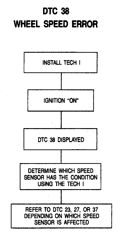 A DTC 38 relates to the BPMV seeing the signal from one sensor at more than double or less than half the frequency of the other sensors for a 12 second duration. This DTC also sets when all three speed inputs differ more than eight precent. The vehicle speed must be over 12 mph for this DTC to set. Do not replace the BPMV for this DTC. A faulty BPMV will not cause this DTC to set.