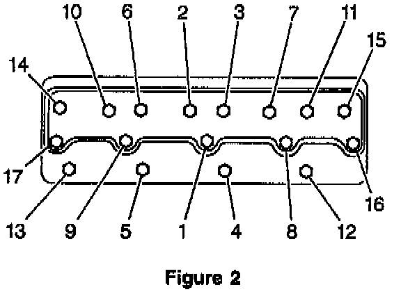 - In sequence (Figure 2), tighten all of the cylinder head bolts and additional 90 - 100 degrees (1/4 plus turn).