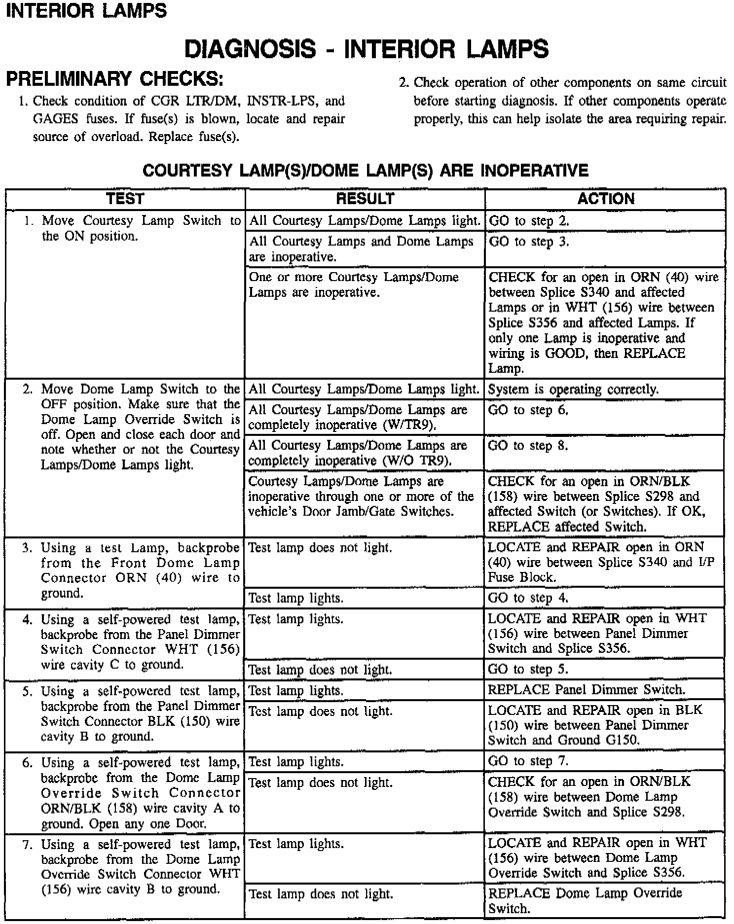 Interior Lamps - Revised Schematics & Diagnostic Tables