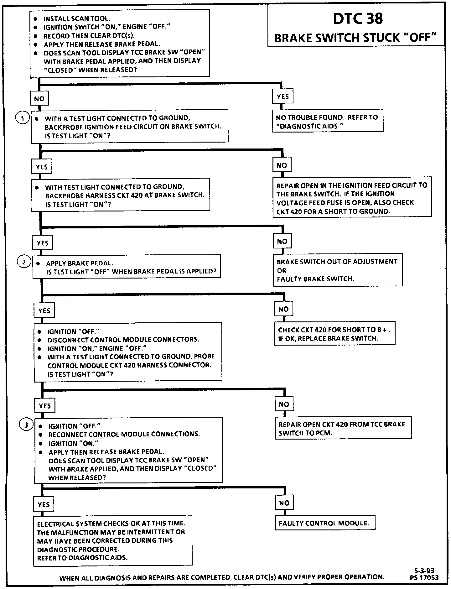 DTC 38 Brake Switch Stuck "OFF":
