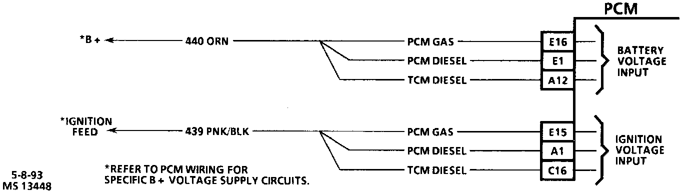 Ignition voltage is supplied to the control module to indicate the ignition status of the ignition switch. Battery voltage is supplied to the control module to, in part, maintain memory of learned functions and parameters.