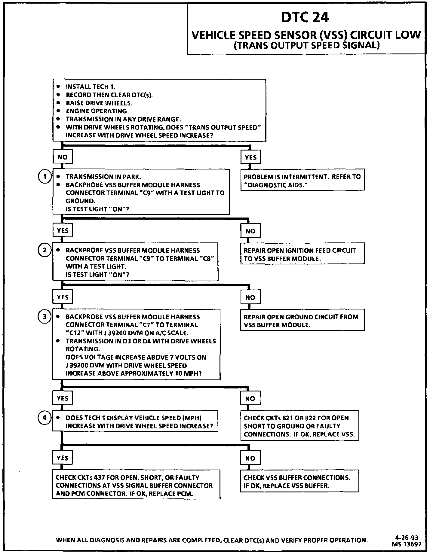^ DTC 24 will set when no vehicle speed is detected at start off.