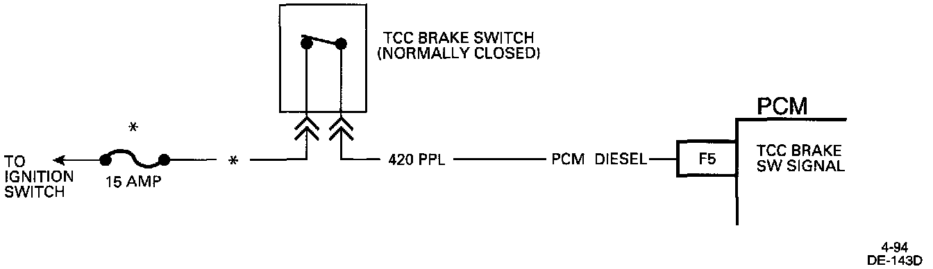 The normally closed brake switch supplies a B+ signal on CKT 420 to the Powertrain Control Module (PCM). The signal voltage is opened when the brakes are applied.