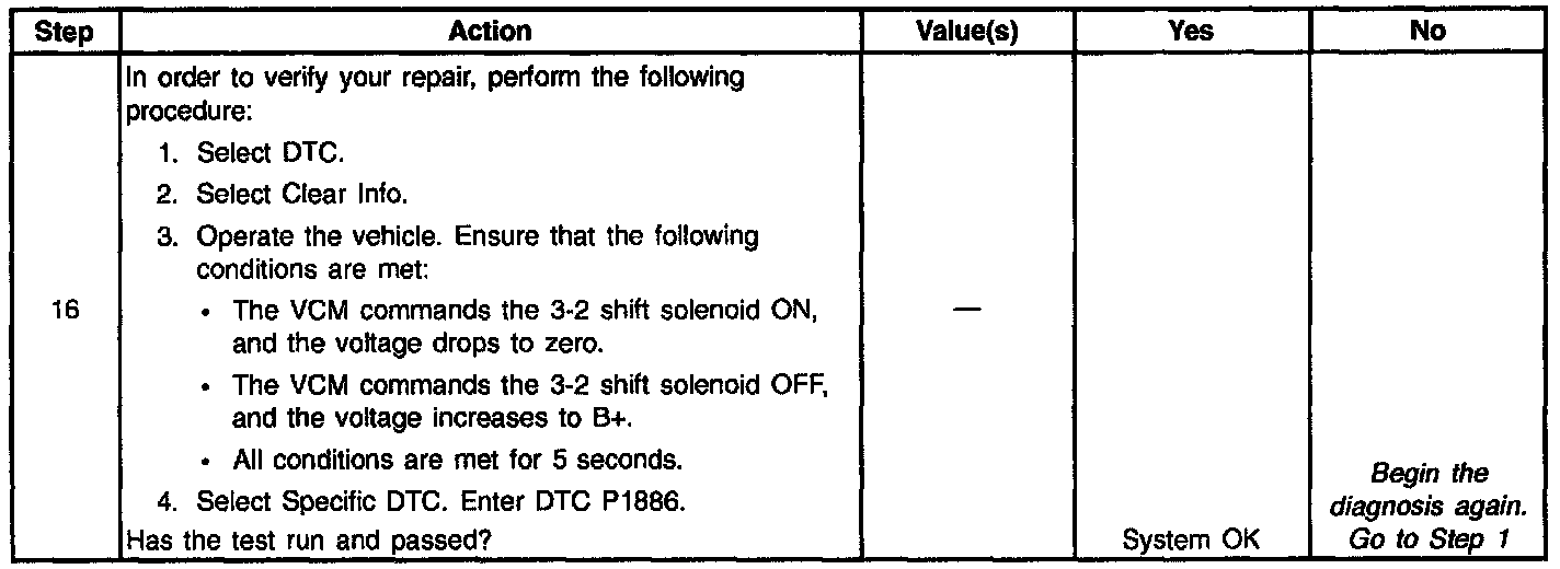 When the VCM detects a continuous open or short to ground in the 3-2 SS Valve Assy. circuit or the 3-2 SS Valve Assy, then DTC P1886 sets. DTC P1886 is a type A DTC.