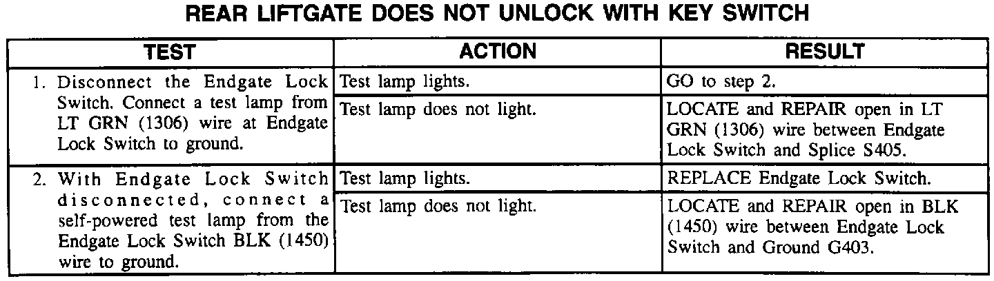 Rear Liftgate Does Not Unlock With Key Switch