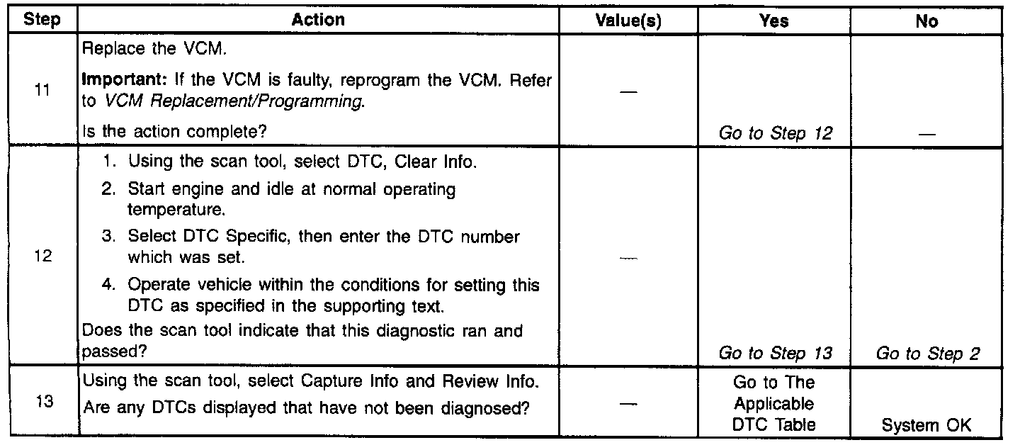 The numbers below refer to the step numbers on the diagnostic table.