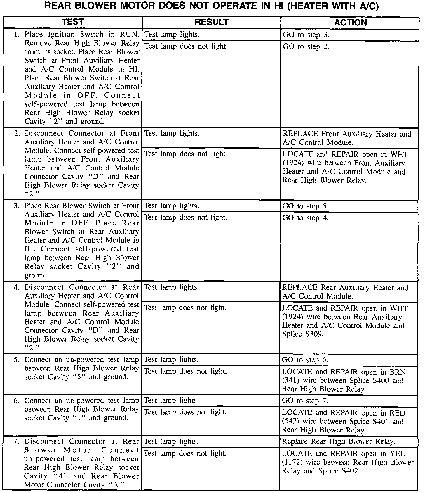 Rear Blower Motor Does Not Operate In Hi