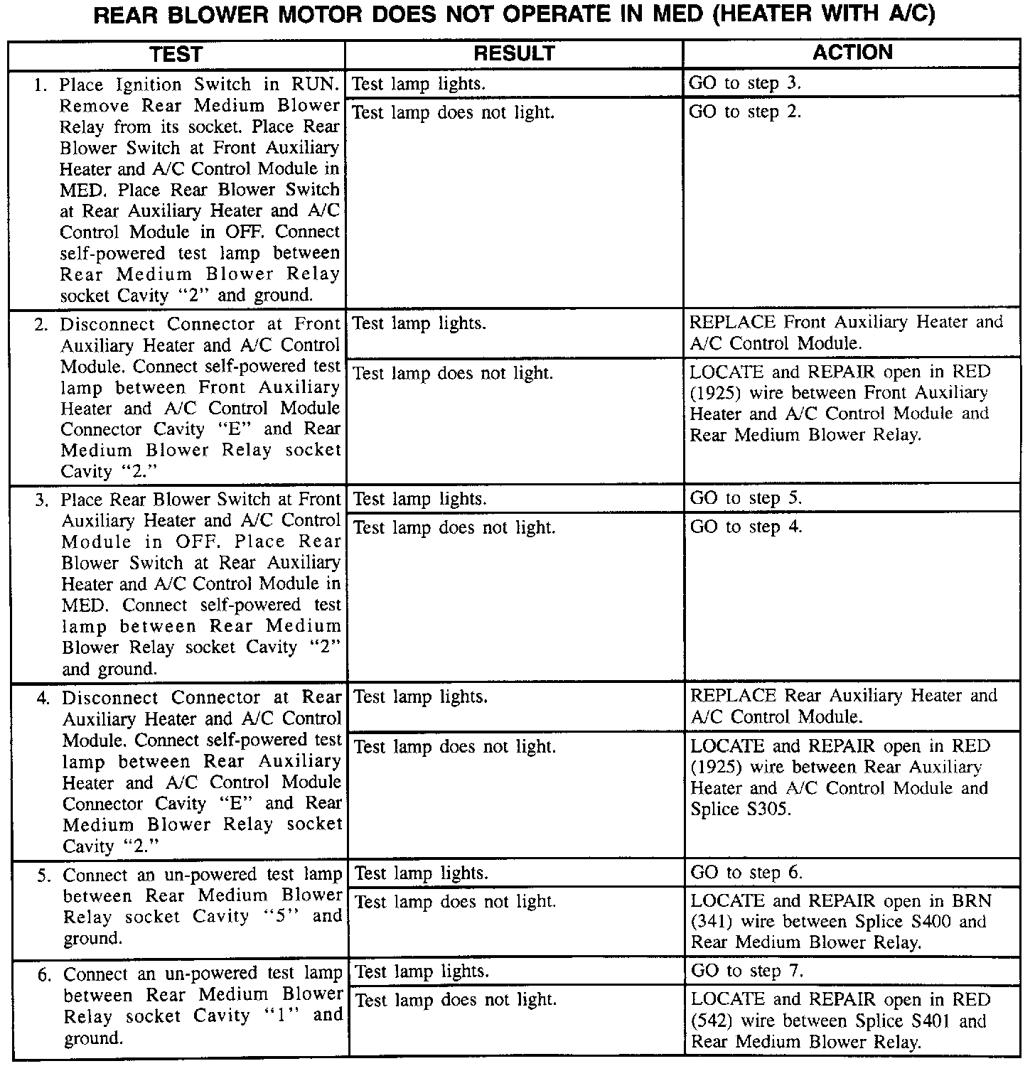 Rear Blower Motor Does Not Operate In MED (Part 2 Of 2):