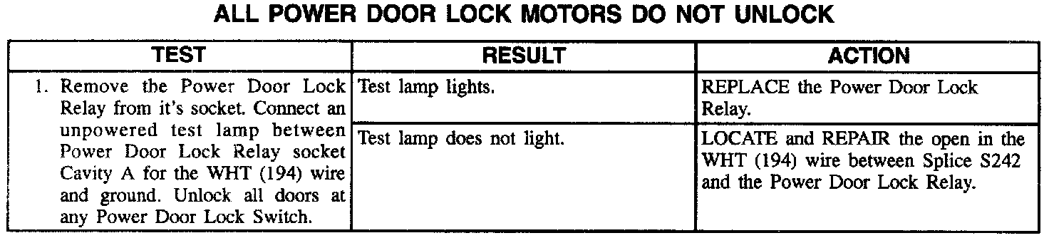 All Power Door Lock Motors Do Not Unlock: