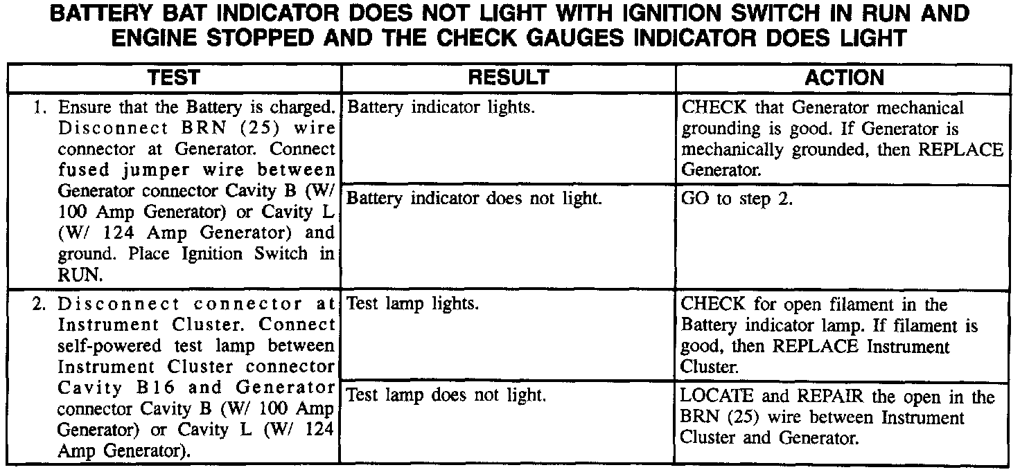 Battery Bat Indicator Does Not Light With Ignition Switch In Run And Engine Stopped And The Check Gauges Indicator Does Not Light: