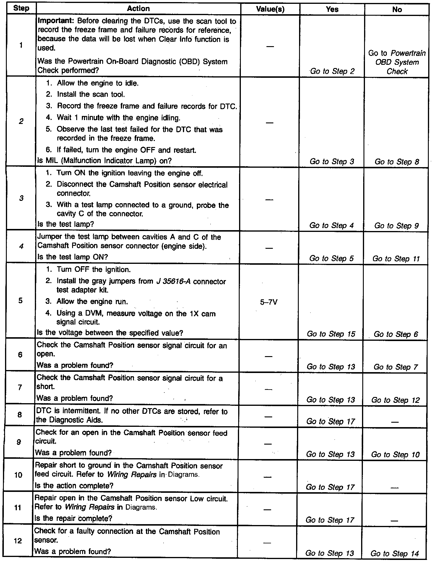 The DTC will set if the engine is running and the cam sensor reference pulse is not seen once every 6 cylinders.