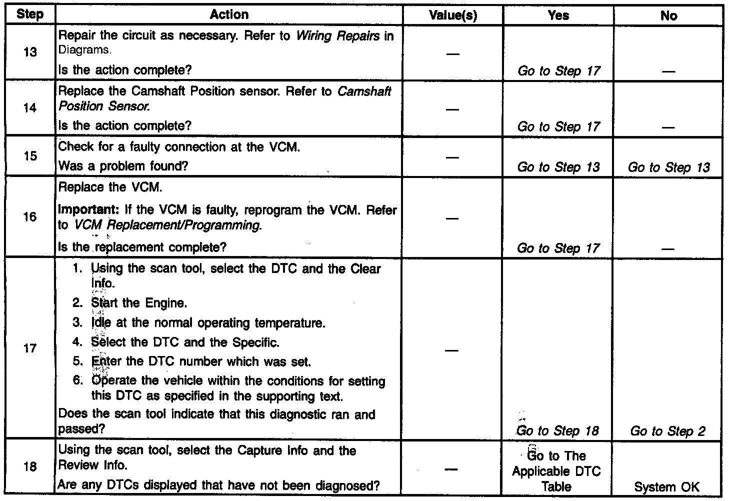 The Camshaft Position (CMP) sensor indicates the camshaft position so that the VCM can determine which cylinder is misfiring when a misfire is present. It is also used to check for a properly installed High Voltage switch. This is a type B DTC.