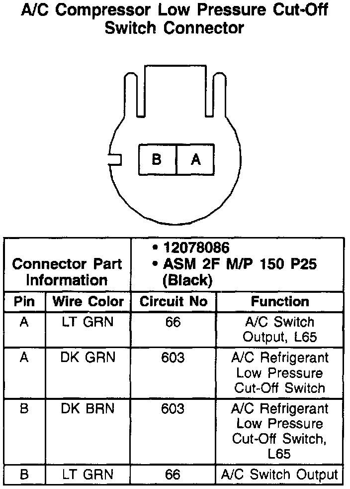 A/C Compressor Low Pressure Cut-Off Switch Connector: